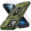 The DEERLAMN iPhone 15 case offers comprehensive protection with its military-grade shockproof design, combining TPU and PC materials. A sliding cover safeguards the camera lens, while the 360° rotating ring kickstand provides convenient hands-free viewing. The integrated metal patch allows compatibility with magnetic car mounts. Additionally, the package includes two screen protectors for complete device security.